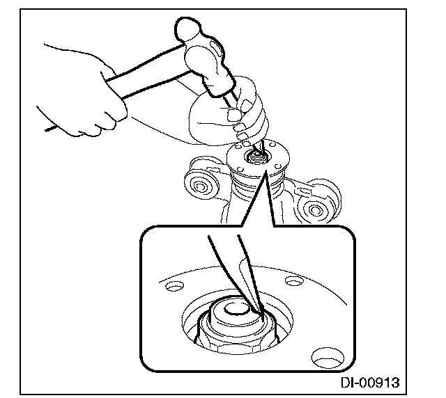 (1) Release the crimp of the drive pinion nut using a chisel and a hammer.