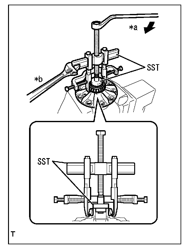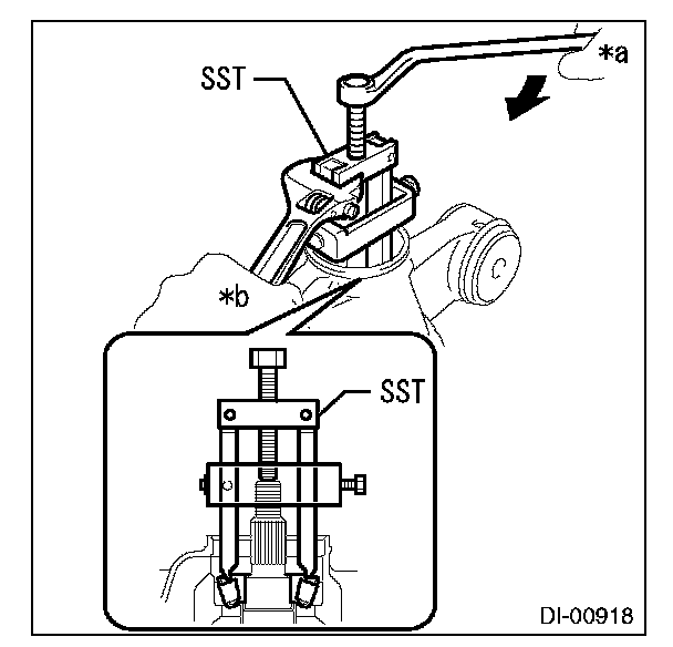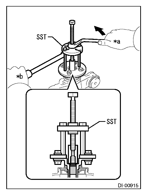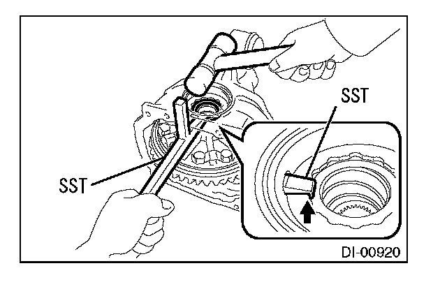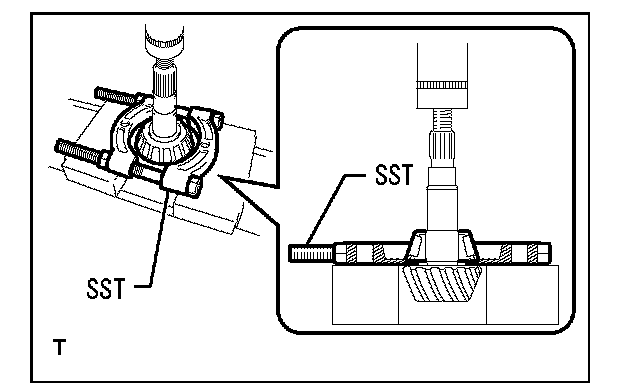 In order to ensure the contact surface between the SST and the tapered roller bearing RR (inner race), perform the operation while tightening the nut of the SST.