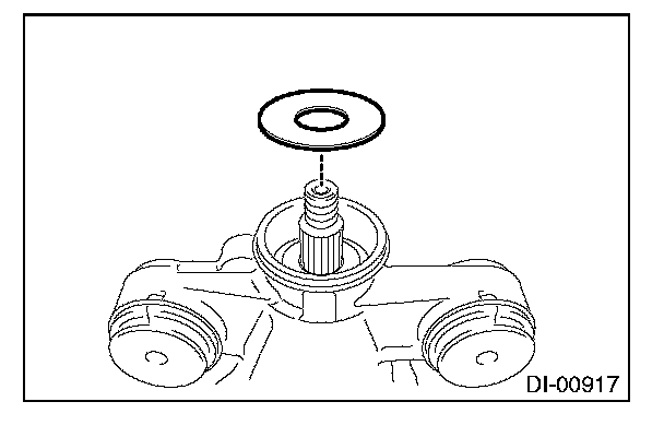 (2) Install the right and left (back face side and tooth face side) side gear shaft washer to the differential carrier while avoiding play of the case bearing.
