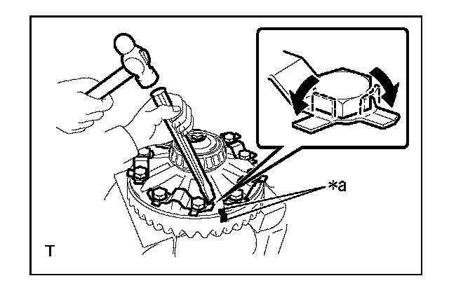 (5) Using a plastic hammer, evenly tap the periphery of the ring gear, and remove the ring gear from the differential case.