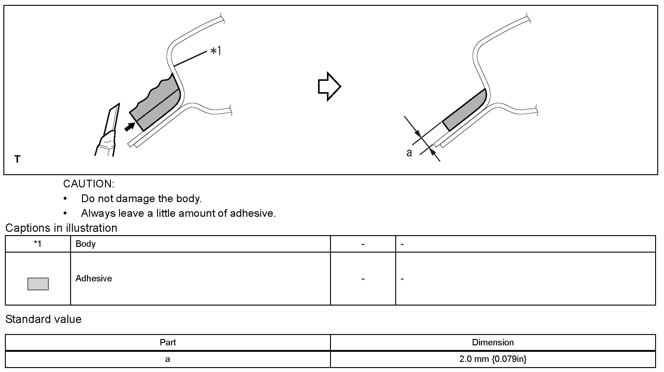 a. Remove the adhesive layer on the body using cutter knife or similar tool to obtain smooth surface of 2 mm {0.08 in} thick.