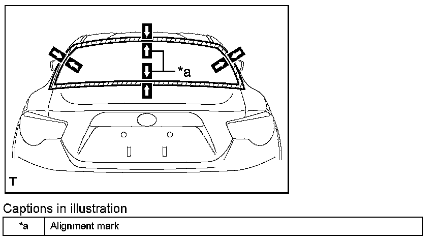 NOTE: When back window glass will be reused, check and correct the position of the alignment marks.