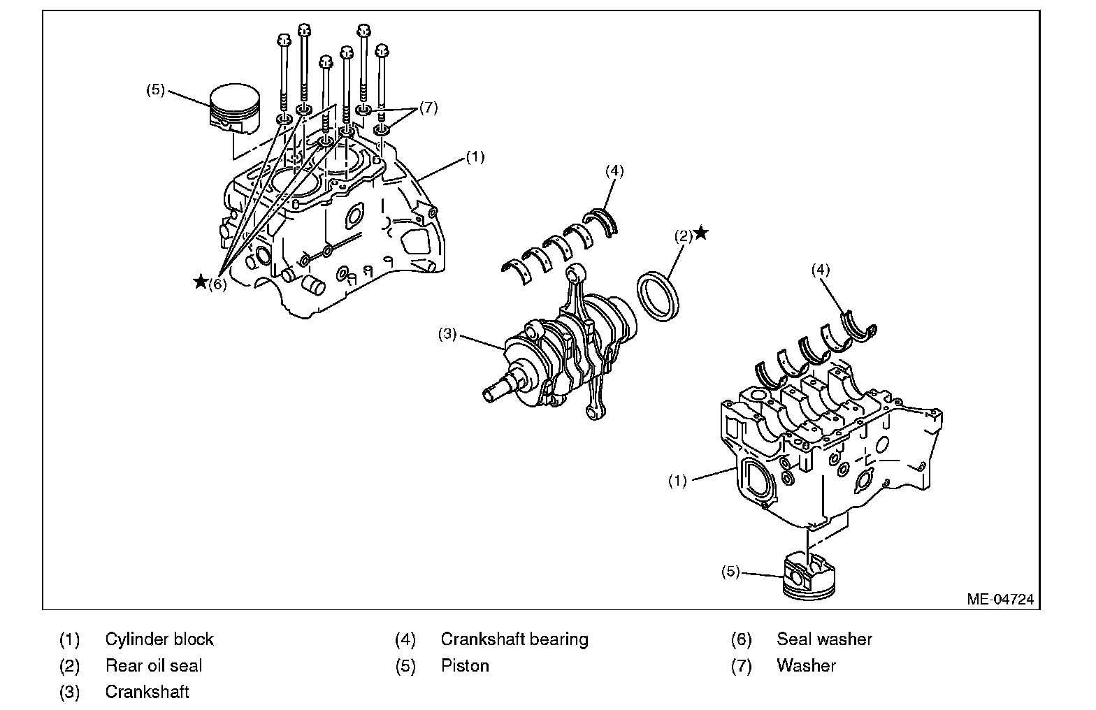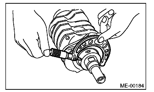 1) Clean the crankshaft completely, and check it for cracks using liquid penetrant tester. If defective, replace the crankshaft.