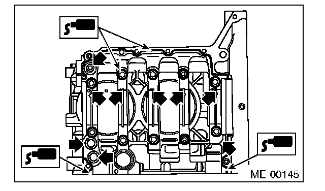 5) Tighten the 10 mm cylinder block connecting bolts on the LH side (A - D) in alphabetical order.