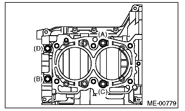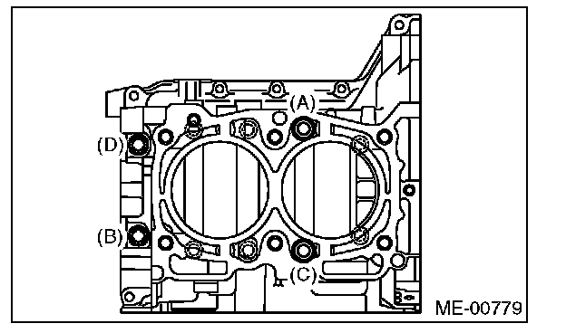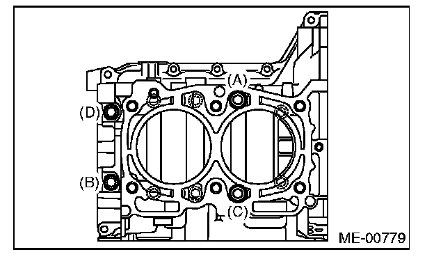 7) Tighten the LH side cylinder block connecting bolts (A - D) further in alphabetical order.