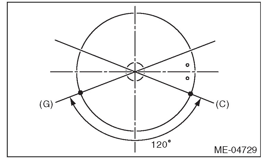 18) Set the lower rail gap at position (G), located 120° clockwise from (C) in the figure.