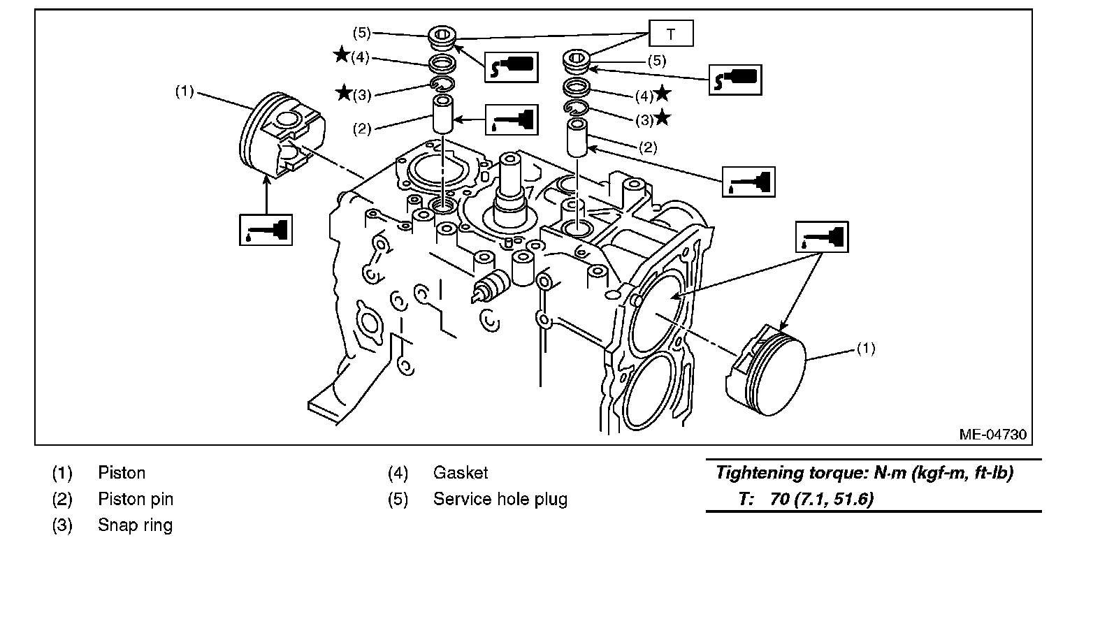 1) Check the piston and piston pin for damage, cracks or wear. Replace if faulty.