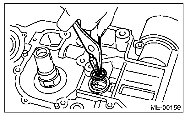^ Press the crankshaft bearing at the end opposite to locking lip to remove.