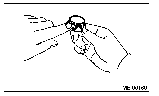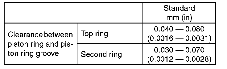 Before measuring the clearance, clean the piston ring groove and piston ring.