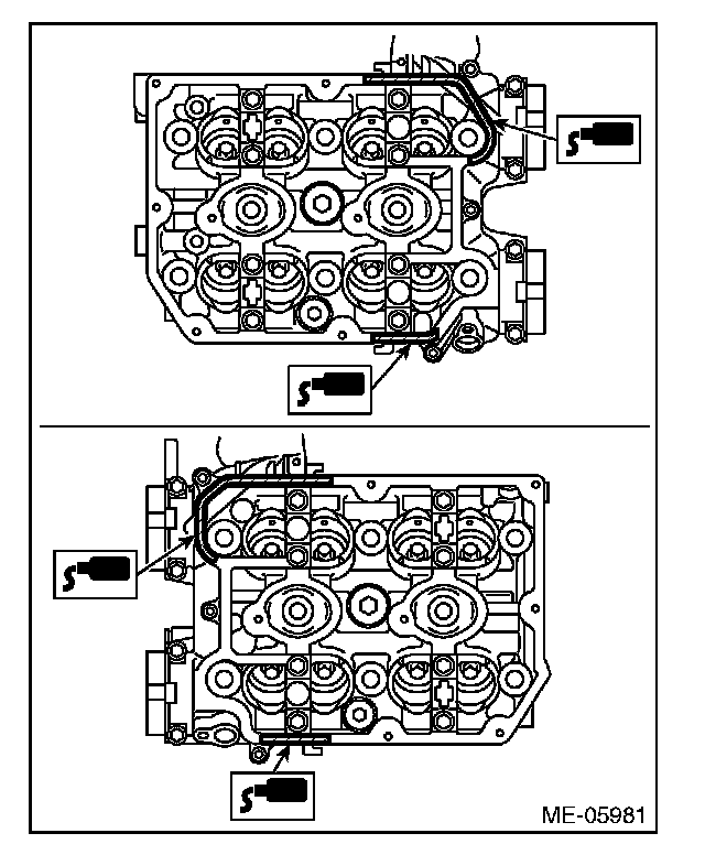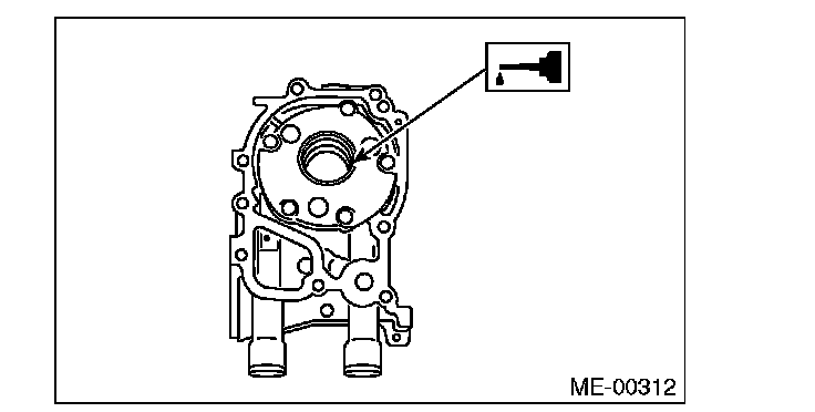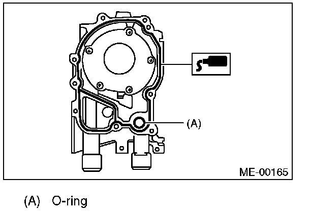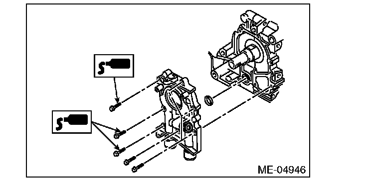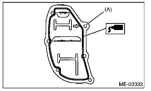 ^ Do not allow liquid gasket to jut into O-ring grooves, oil passages, bearing grooves, etc.