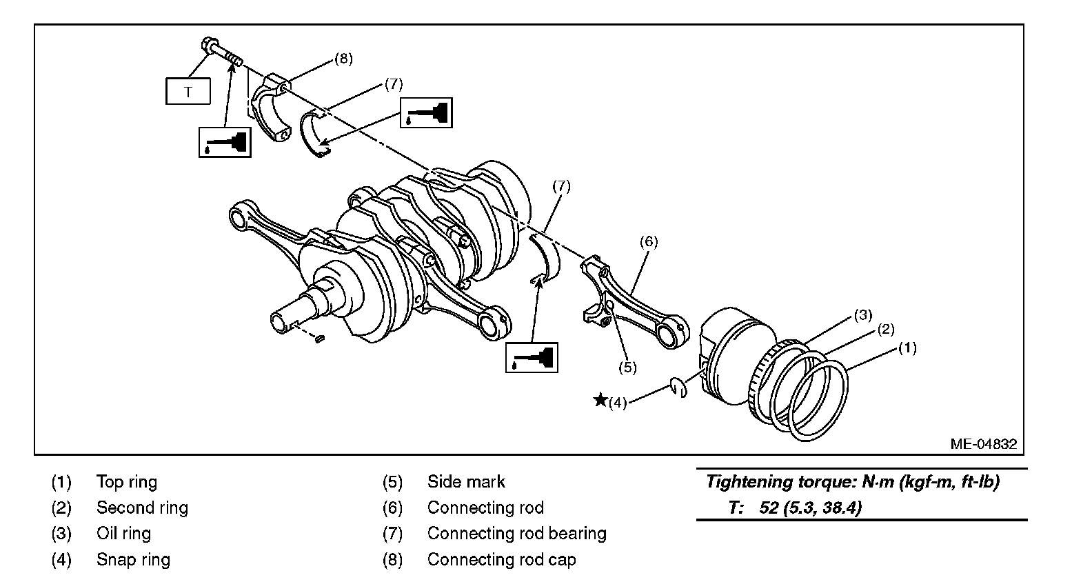 6) Inspect the bushing at connecting rod small end, and replace the connecting rod if it is worn or damaged.