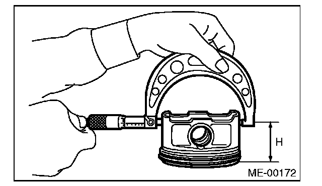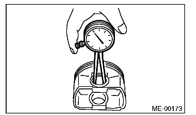 7) Measure the piston pin clearance at connecting rod small end. If the measured value is not within the standard, replace the connecting rod and piston pin as a set.