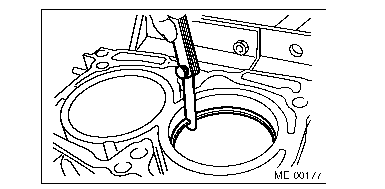 2) Using the piston, insert the piston ring and oil ring into the cylinder block so that they are perpendicular to the cylinder wall, and measure the piston ring gap using a thickness gauge.