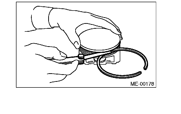 Before positioning the piston on the cylinder block, attach the snap ring in the service hole of the cylinder block, and the piston hole on the opposite side.