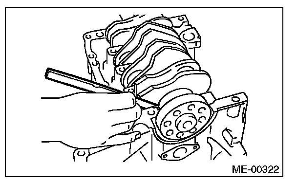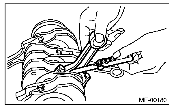 6) Measure the oil clearance on each crankshaft bearing using plastigauge. If the measured value is out of standard, replace the defective bearing with an undersize one, and replace or grind to correct the crankshaft as necessary.