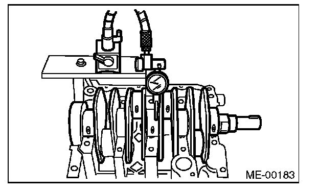 If a suitable V-block is not available, using just the #1 and #5 crankshaft bearings on cylinder block, position the crankshaft on cylinder block. Then, measure the crankshaft bend using a dial gauge.