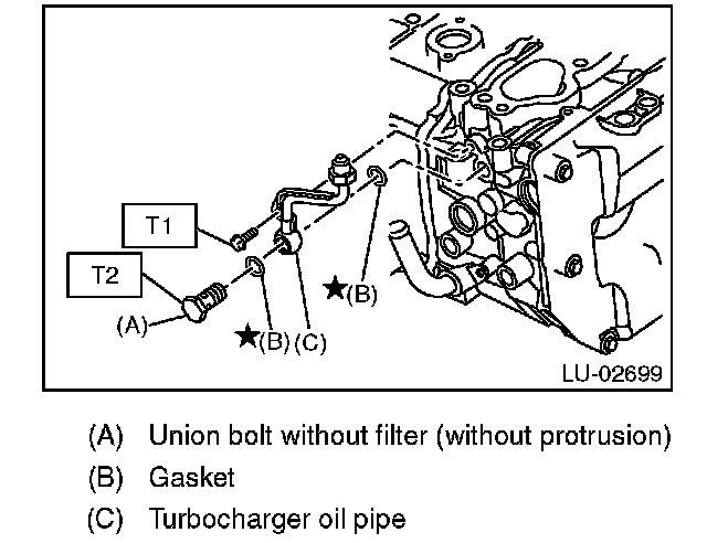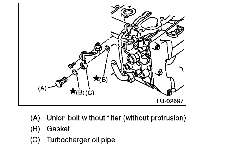 13) Install the turbocharger oil pipe.