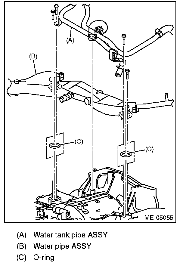 10) Install the blow-by pipe and water pipe assembly. (Oil pipe RH only)