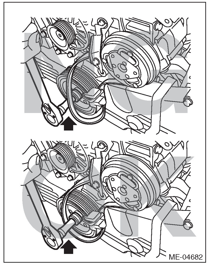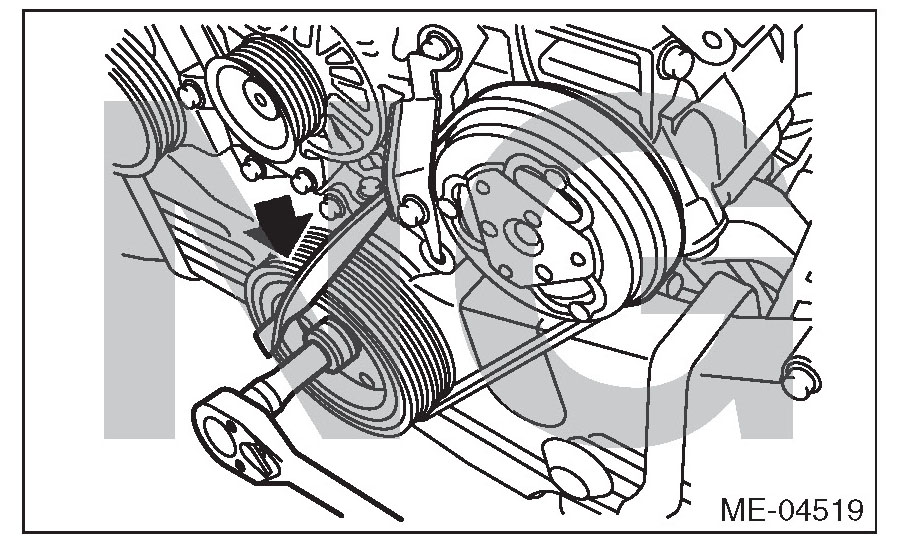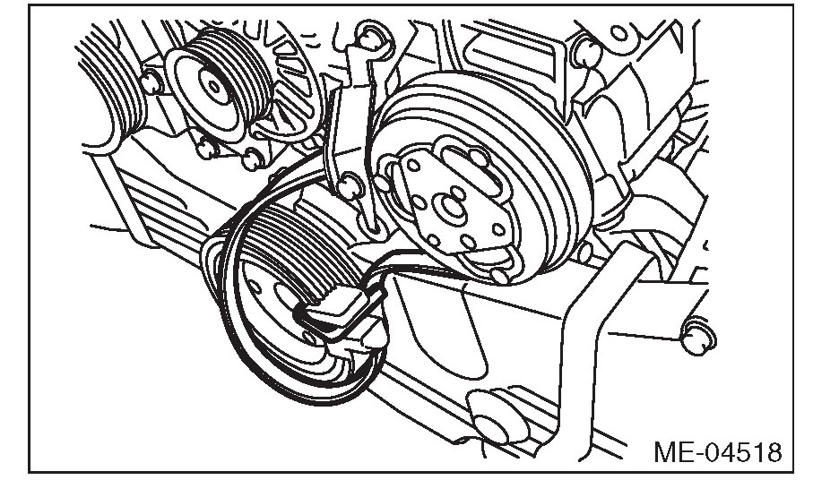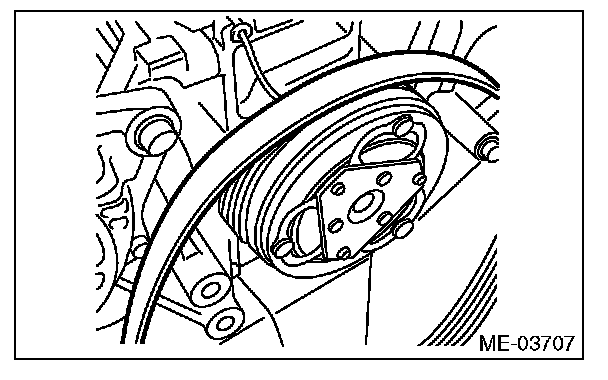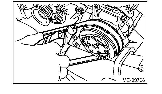 (2) The rib of the rear side belt is securely placed on the groove of the A/C compressor pulley.