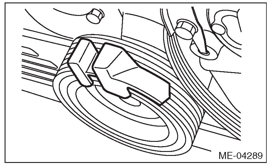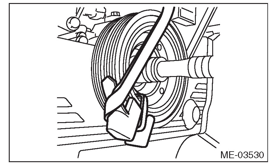 10) Place the tool through the loop of the rear side belt, and set on the crank pulley bolt.