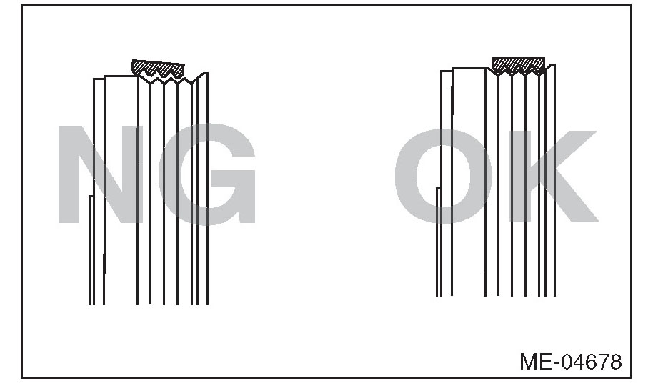 (1) The rib of the rear side belt is securely placed on the groove of the A/C compressor pulley.
