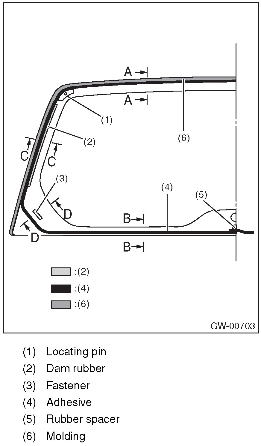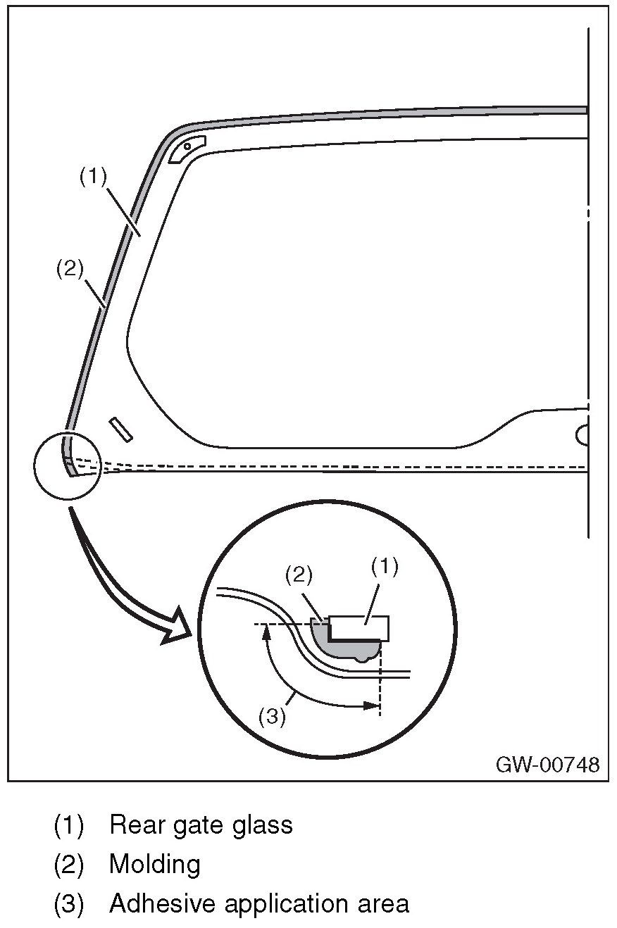 6. Apply adhesive in the same procedure as for windshield glass.