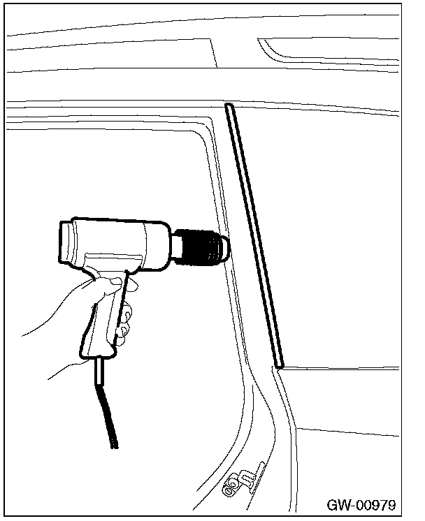 - Heat the molding with the dryer at a distance of 50 mm (1.97 in) from the glass.