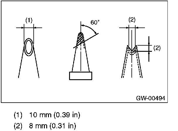 CAUTION: Cutter edge shall be approximately 10 mm (0.39 in) to protect the vehicle body from damage.