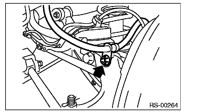 3) Disconnect the connector, and then remove the rear vehicle height sensor. (model with auto headlight beam leveler, left side only)