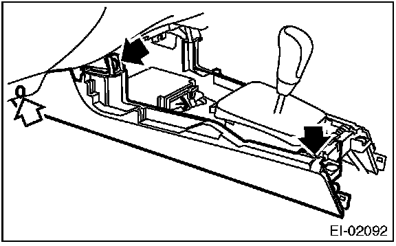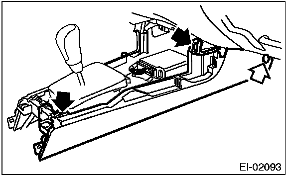 3. Detach the plastic hooks (A) and pull up on the console front panel.