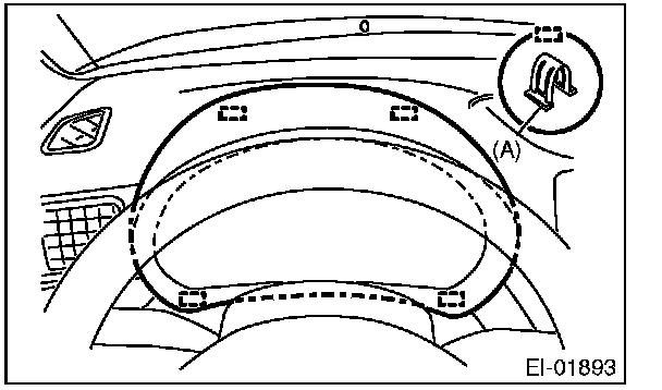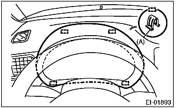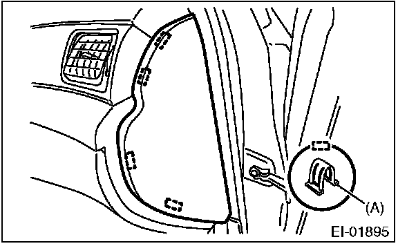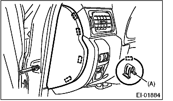 1. Detach the plastic hooks (A) and remove the instrument panel side cover LH.