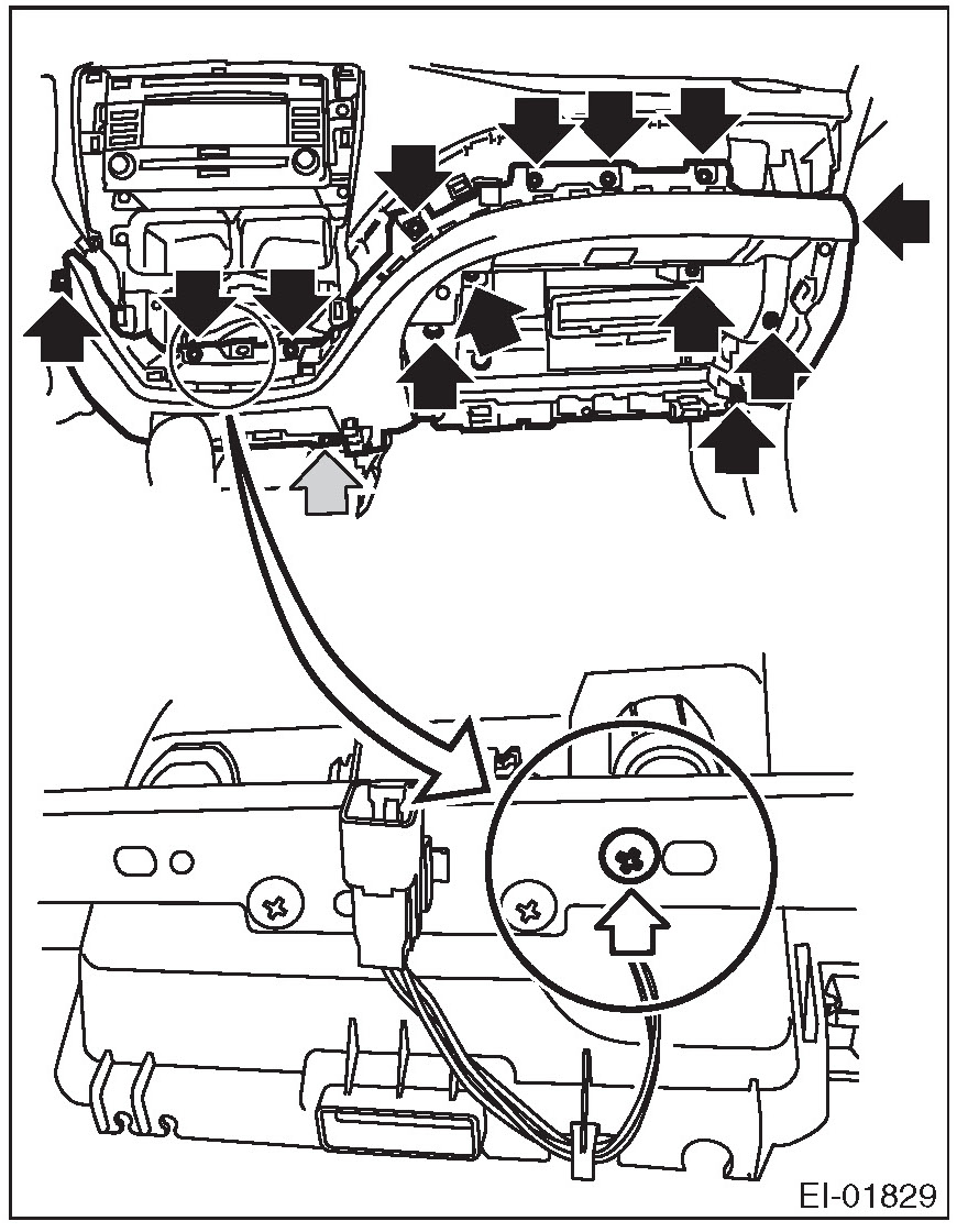 7. Remove the screws and nuts to remove the instrument panel lower.