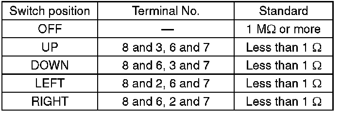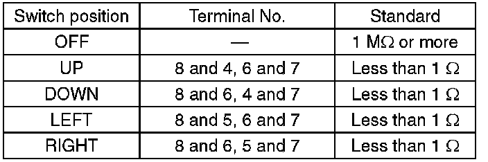 2. Check the resistance between remote control mirror switch terminals.