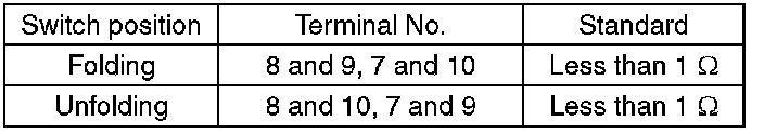 3. Replace the remote control mirror switch if the inspection result is not within the standard value.