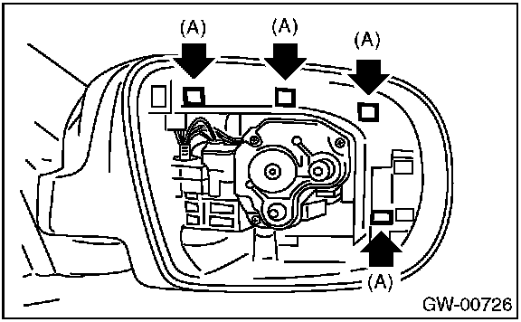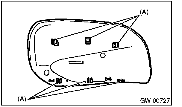 2. Press-in the clips (A) from inside of outer mirror.