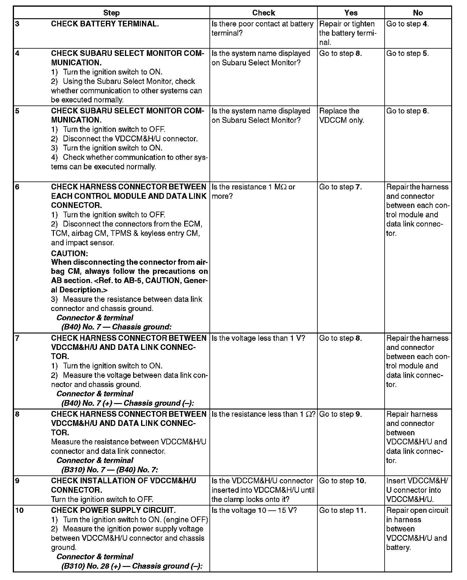 9) If VDC and Subaru Select Monitor cannot communicate, check the communication circuit. Scan Tool Testing and Procedures