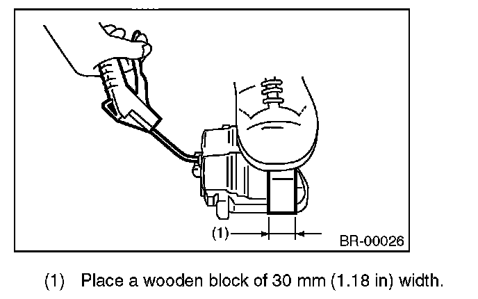 2) Place a wooden block in the caliper body as shown in the figure to prevent the piston from jumping out and being damaged.