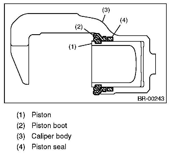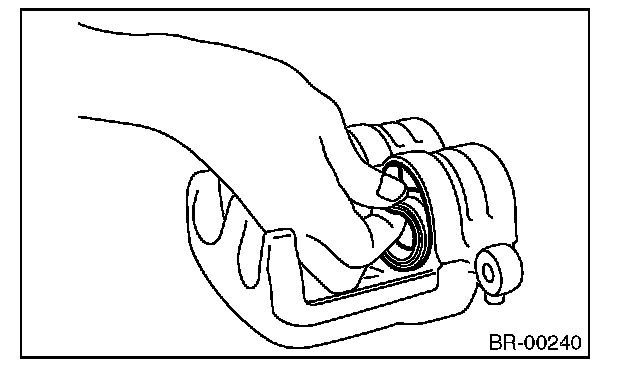 2) Apply a coat of brake fluid to piston seal and install the piston seal to the caliper body groove.