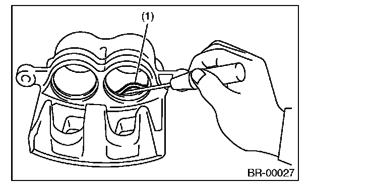 5) Remove the piston seal (1) from the caliper body cylinder.