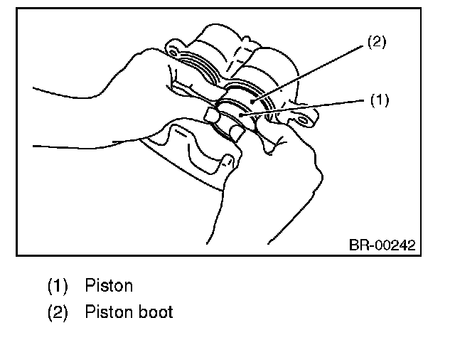 1) Clean the inside of the caliper body using brake fluid.