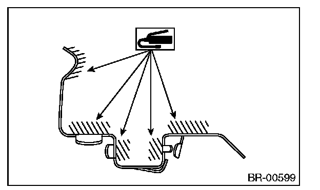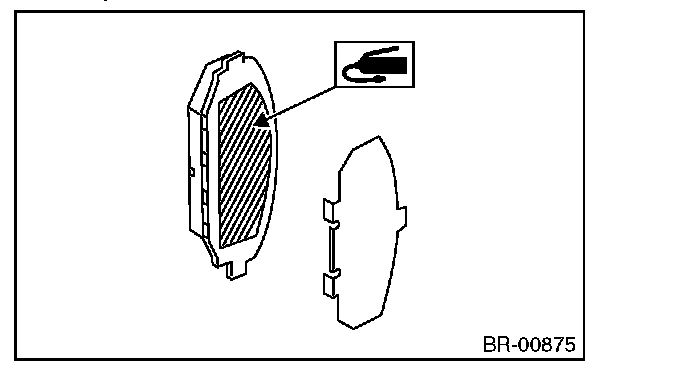 2) Apply a thin coat of Molykote AS880N or grease contained in the pad kit to the contact surface between the pad and shim.