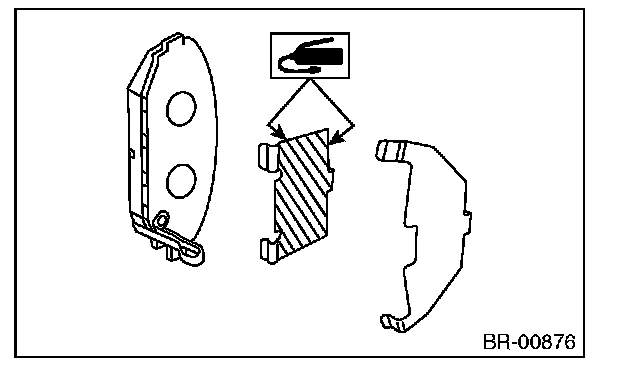 3) Apply a thin coat of Molykote AS880N or grease contained in the pad kit to both surfaces of the pad inner shim.