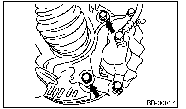 2) Remove the caliper body assembly from housing, and suspend it from the strut using a wire.