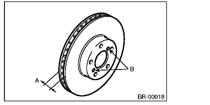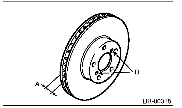If it is difficult to remove the disc rotor from the hub, drive an 8 mm bolt into the threaded section (B) of the rotor, then remove the rotor.