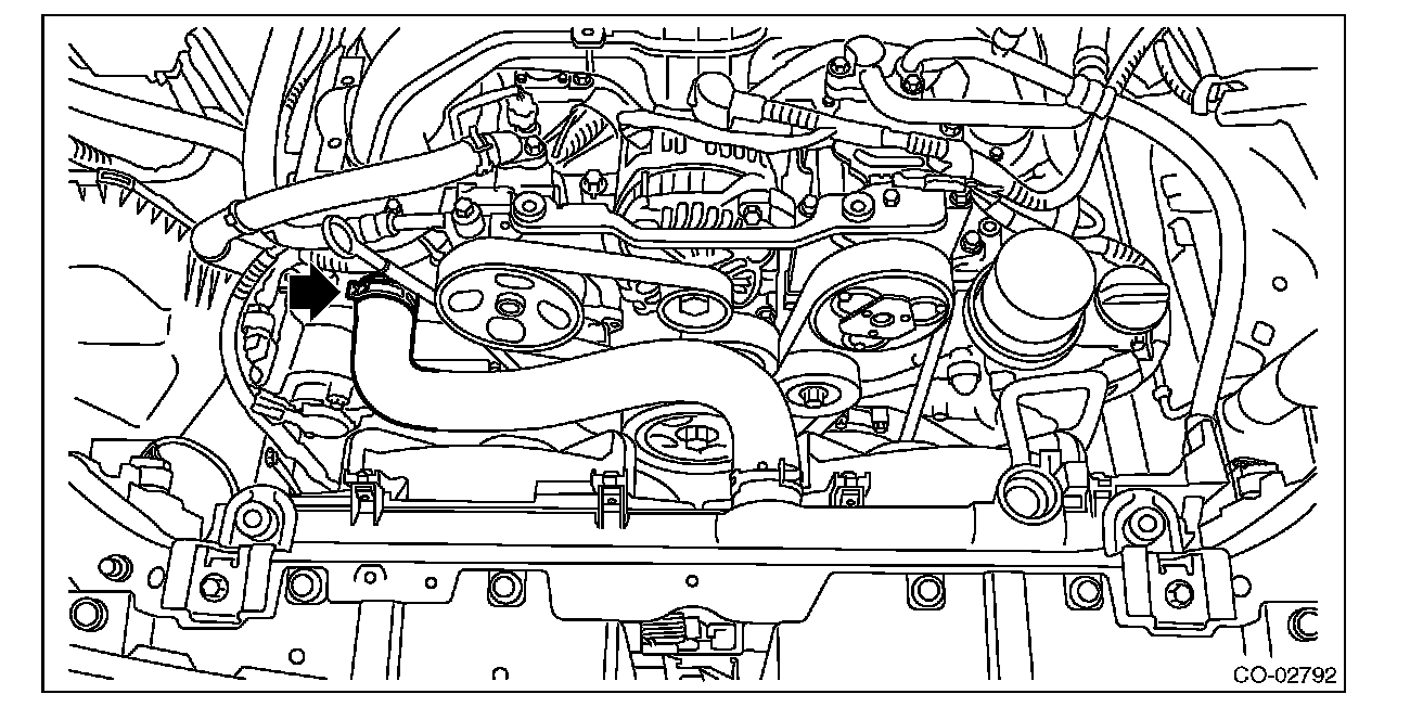 11) Disconnect the radiator inlet hose from the water pipe assembly.