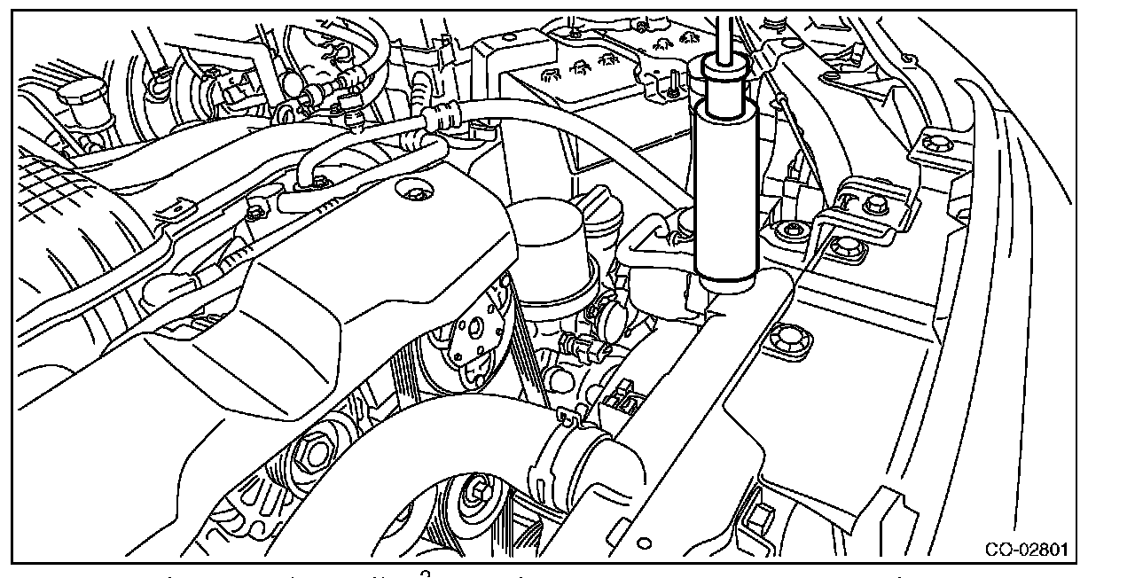 3) Remove the radiator cap, fill the radiator with engine coolant, and then install the radiator cap tester to the filler neck of radiator.