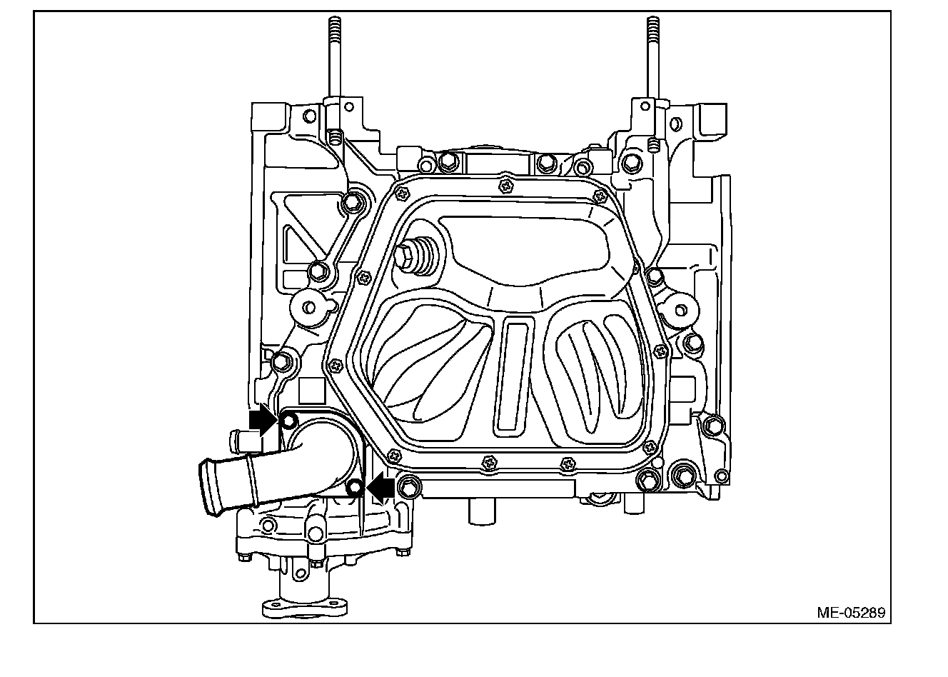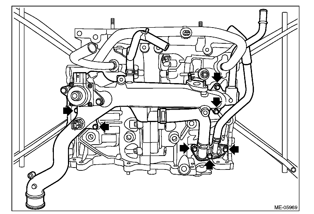 10) Remove the bolts securing the water pipe assembly and PCV connector to the cylinder block, and remove the water pipe assembly and PCV connector as a set from cylinder block.