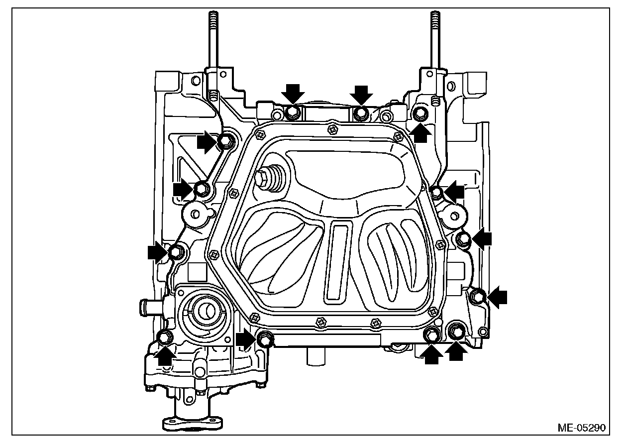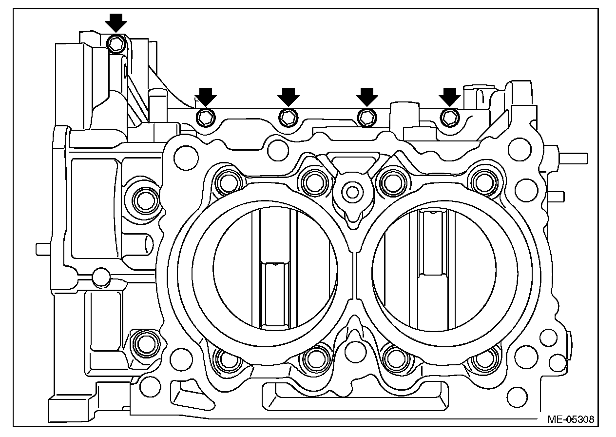 (12) Remove the cylinder head bolt attached at the locations shown in the figure.