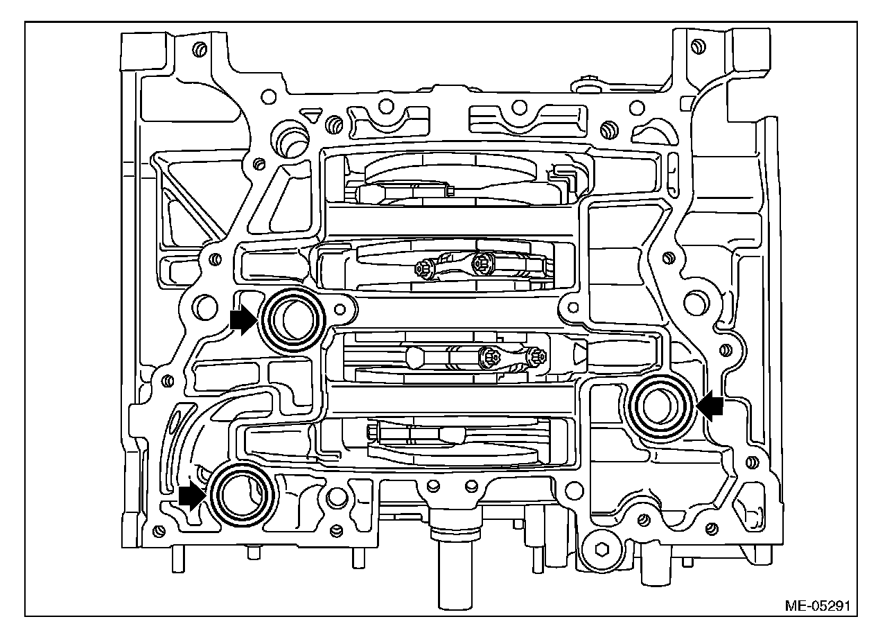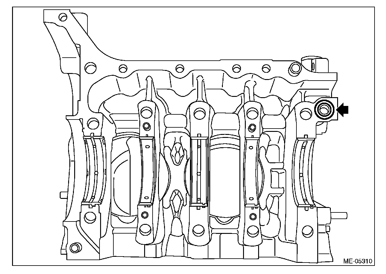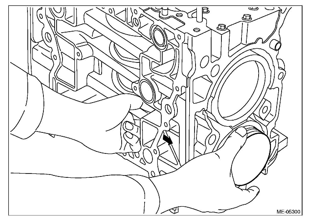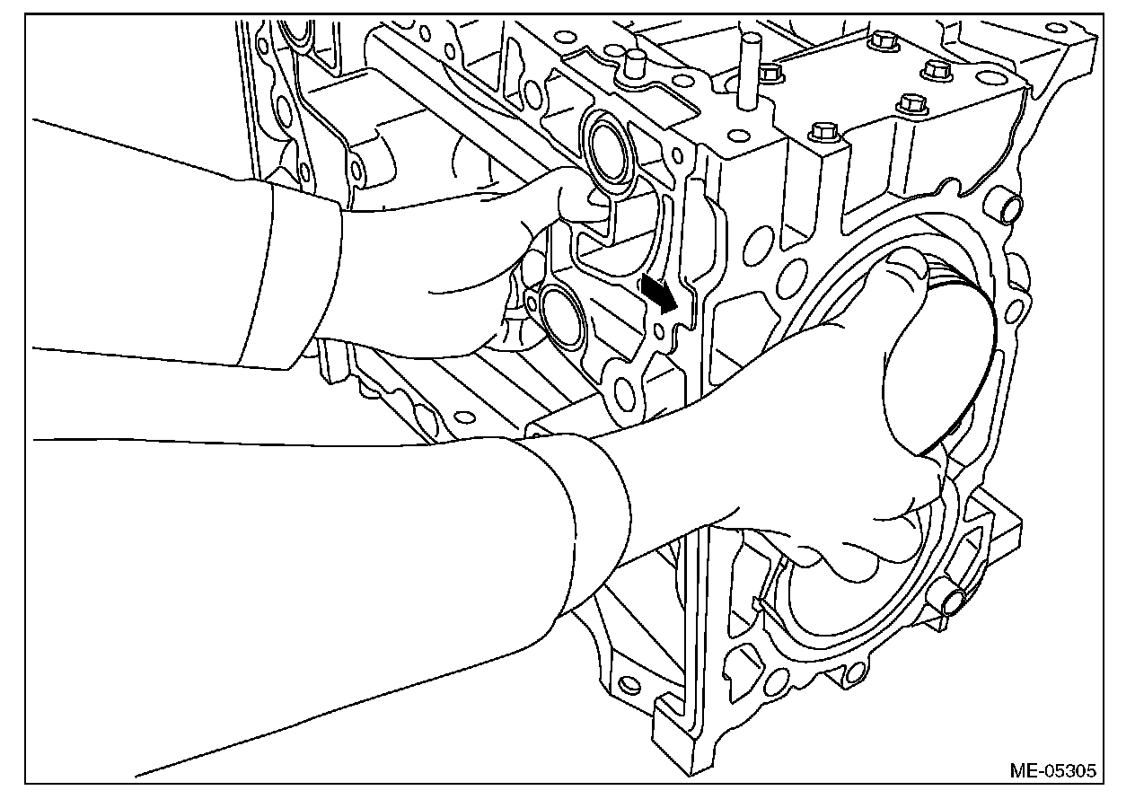 ^ Be careful not to scratch the mating surface of cylinder block during work.