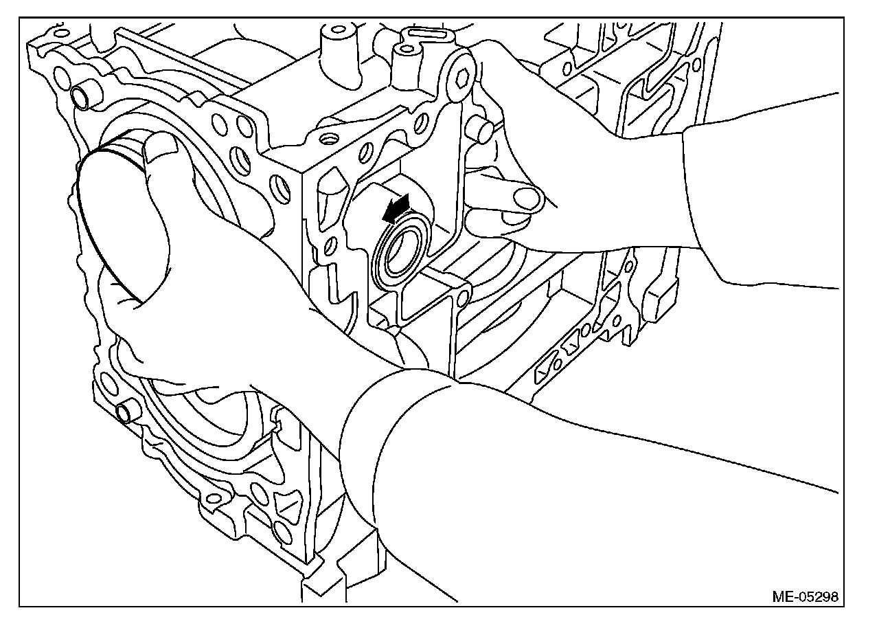 1) Apply engine oil to the crankshaft bearing, and install the crankshaft bearing to the cylinder block.